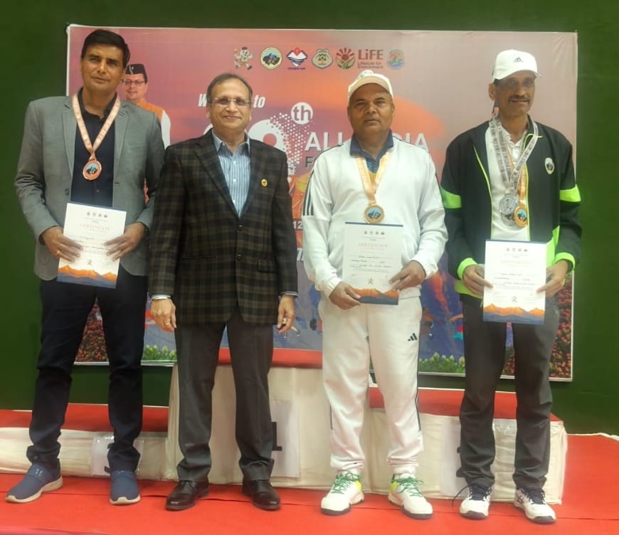 सीनियर वेटरन्स मैंस सिंगल्स में भी ललितमोहन जोशी ने फाइनल में पहुंचकर रजत पदक हासिल किया।