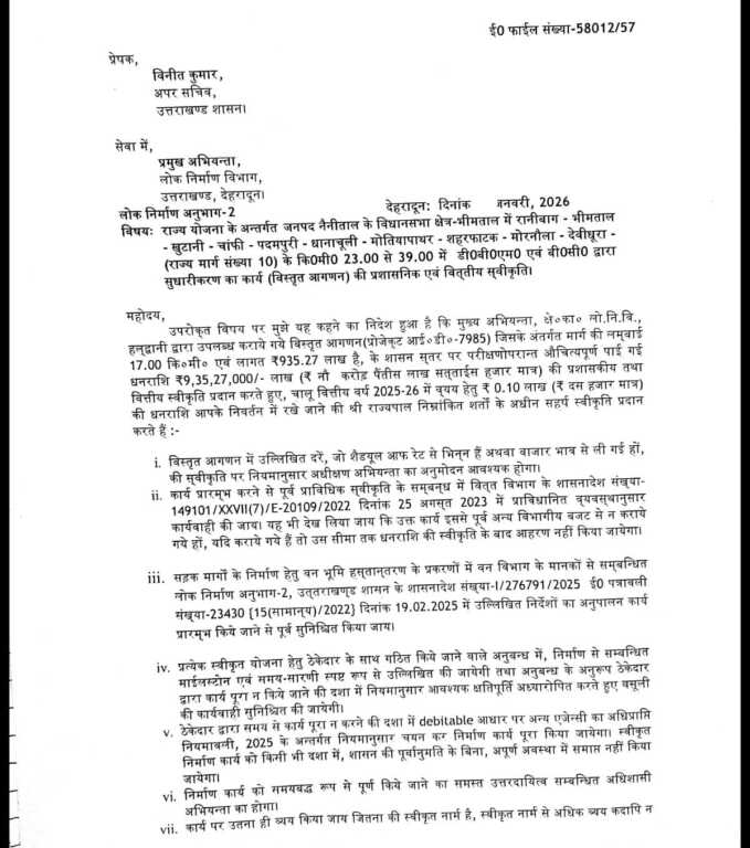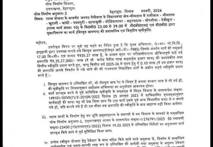 विधायक की मांग पर मुख्यमंत्री ने मोटर मार्ग पर डामरीकरण के लिए 9करोड़ 37 लाख स्वीकृति कर जिसका शासन से शासनादेश जारी हो होने के बाद टैण्डर प्रकिया शुरू हो गई है विधायक कैड़ा ने कहा जल्दी ही मोटर मार्ग पर सोलिंग का कार्य प्रारम्भ कर डामरीकरण का कार्य फरवरी लास्ट तक मार्च प्रथम तक किया जायेगा। विधायक कैड़ा ने मुख्यमंत्री का आभार व्यक्त किया है विधायक कैड़ा ने कहा भीमताल विधानसभा क्षेत्र के ओखलकांडा, धारी,, रामगढ़ व भीमताल ब्लॉक के क्षतिग्रस्त मोटर मार्गो पर लगातार डामरीकरण करने का कार्य किया जा रहा है। क्षेत्र जी जनता ने विधायक कैड़ा का आभार व्यक्त किया।