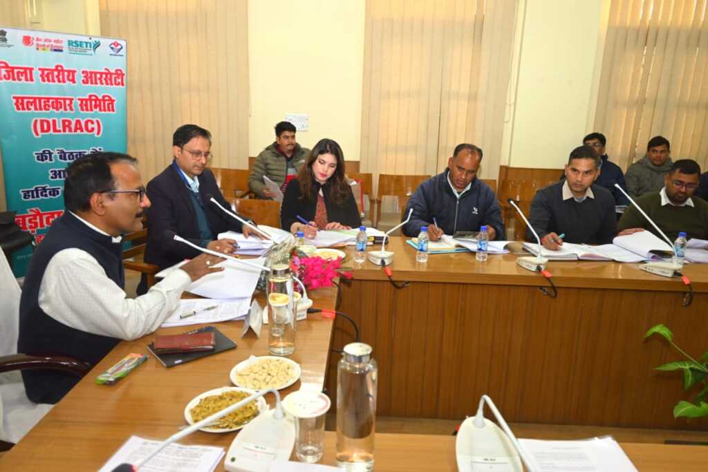 हल्द्वानी। जिलाधिकारी ललित मोहन रयाल ने जिला स्तरीय जिला लीड बैंक सलाहकार समिति (डीएलआरएसी) एवं आरसेटी की सर्किट हाउस काठगोदाम में बैठक लेते हुये सभी बैंकर्स को कृषि, पशुपालन, डेयरी, पालीहाउस (स्वरोजगार क्षेत्र ) में अधिक से अधिक प्राथमिकता से ऋण उपलब्ध कराने के निर्देश दिये।