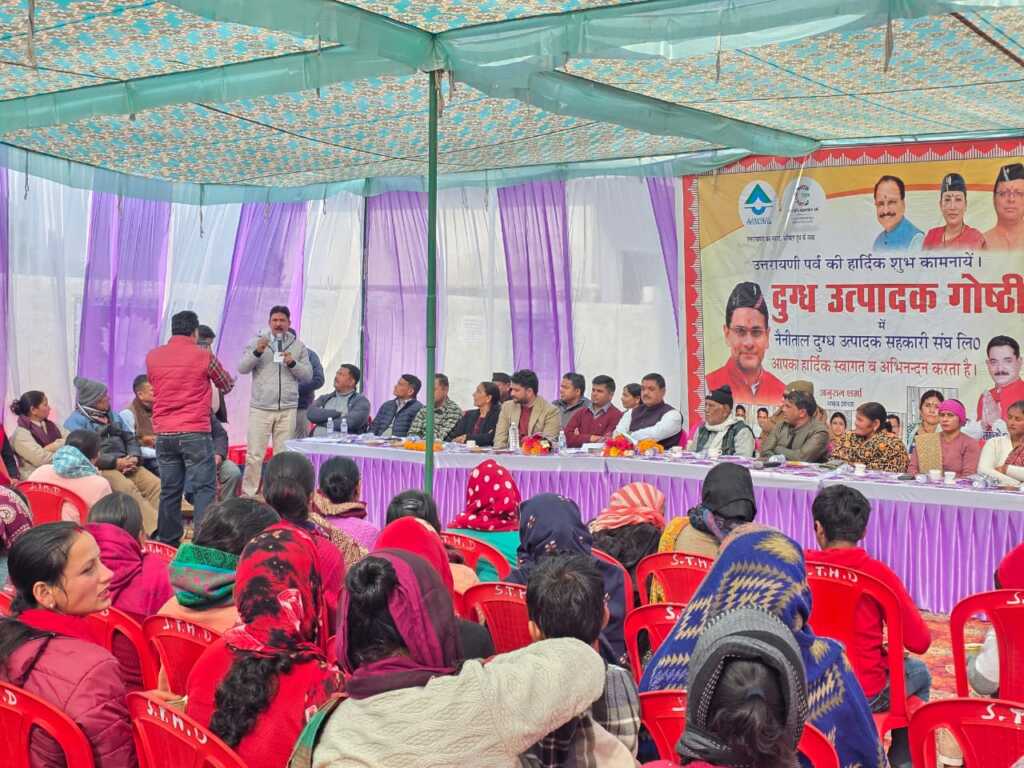 लालकुआँ। नैनीताल आँचल दुग्ध उत्पादक सहकारी संघ लिमिटेड के तत्वावधान में चोरगलिया में दुग्ध उत्पादकों की एक महत्वपूर्ण गोष्ठी का आयोजन किया गया। गोष्ठी में मुख्य अतिथि के रूप में संघ के अध्यक्ष मुकेश बोरा उपस्थित रहे। कार्यक्रम की अध्यक्षता ज्येष्ठ जिला पंचायत सदस्य एवं पूर्व ब्लॉक प्रमुख चिंतामणि चुफाल ने की, जबकि करन गंगोला विशिष्ट अतिथि के रूप में मौजूद रहे।