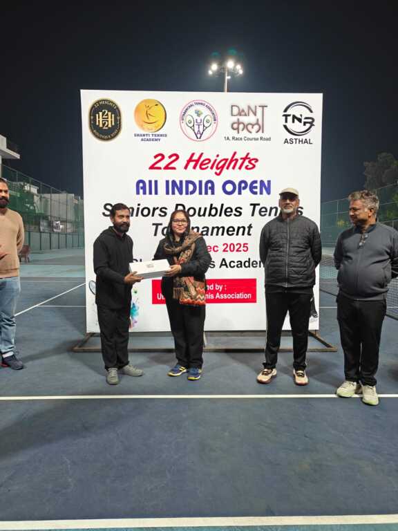 देहरादून। शान्ति टेनिस एकेडेमी, देहरादून (जनपद देहरादून) में आयोजित दो दिवसीय ऑल इंडिया इंडियन ट्री सीनियर्स ओपन टेनिस टूर्नामेंट 2025 का रविवार, 21 दिसंबर 2025 की संध्याकाल कृत्रिम दूधिया रोशनी के बीच सफलतापूर्वक समापन हो गया। इस राष्ट्रीय स्तर की प्रतियोगिता का आयोजन उत्तरांचल टेनिस एसोसिएशन, देहरादून द्वारा किया गया।