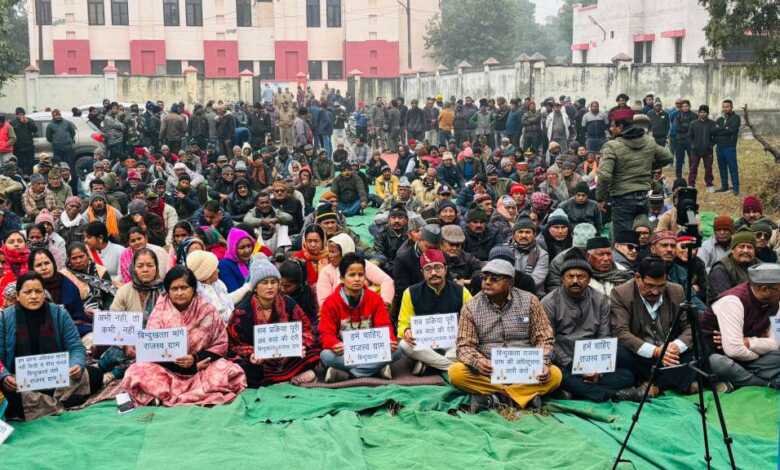 बिंदुखत्ता को राजस्व ग्राम घोषित करने की मांग को लेकर हजारों का धरना-प्रदर्शन