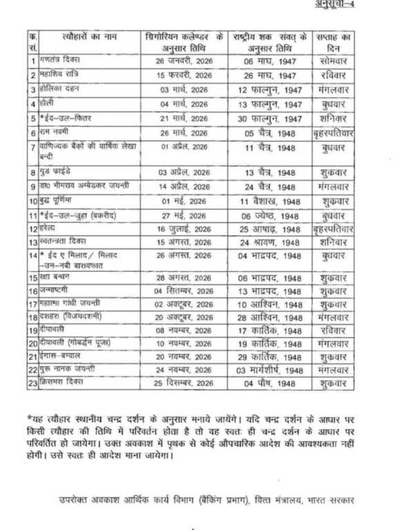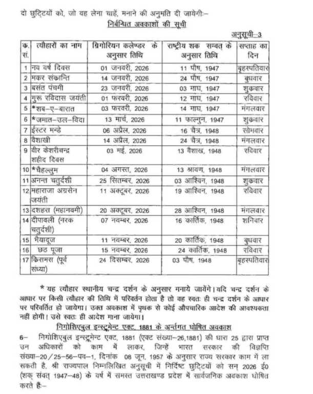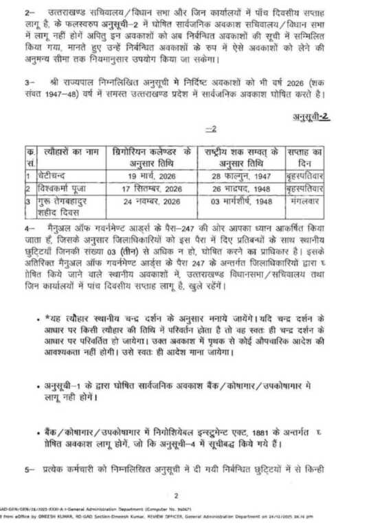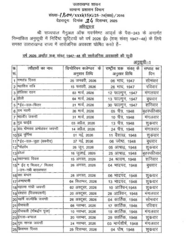 सरकार ने जारी किया 2026 का छुट्टियों का कैलेंडर, ईगास पर भी अवकाश घोषित वंदना संदेशDecember 24, 2025 Facebook Twitter WhatsApp Telegram वंदना संदेशDecember 24, 2025 Facebook Twitter WhatsApp Telegram